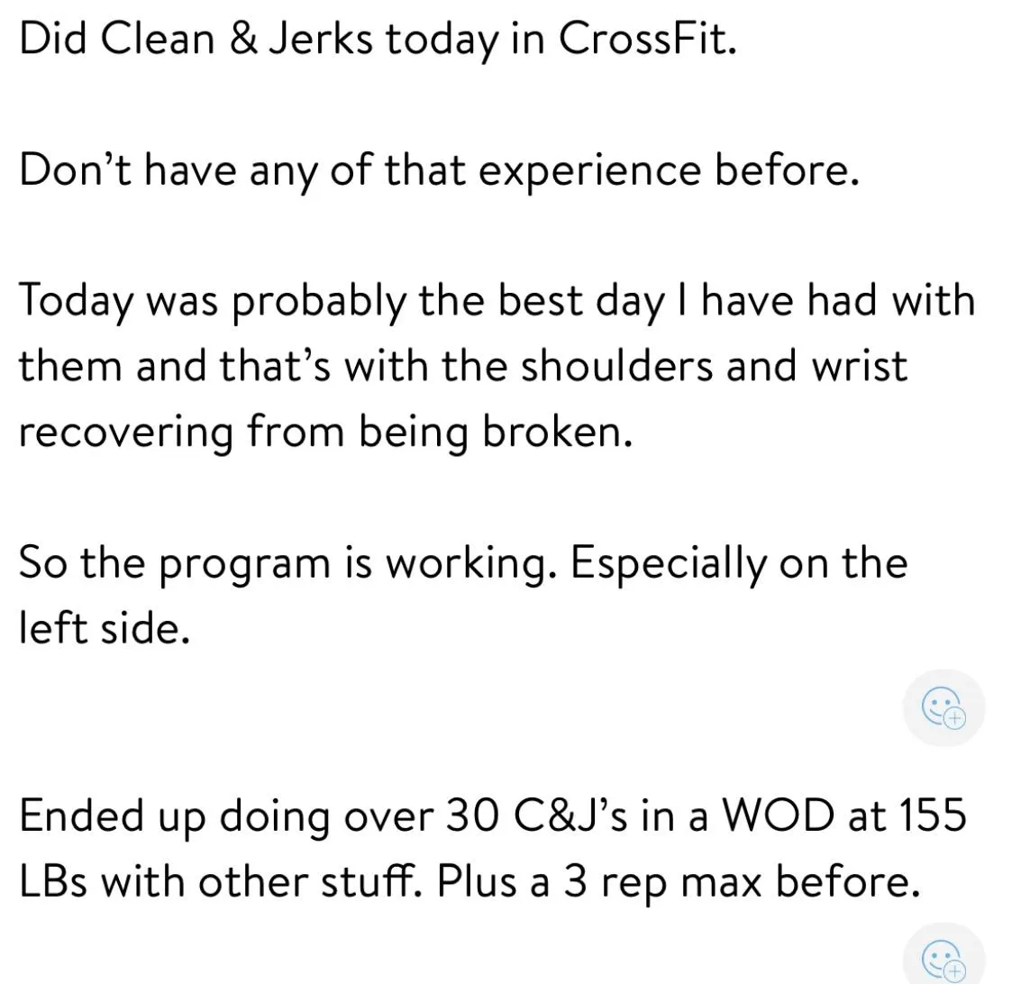 If your bench press, push press, pull ups, toe-to-bar are bothering you.